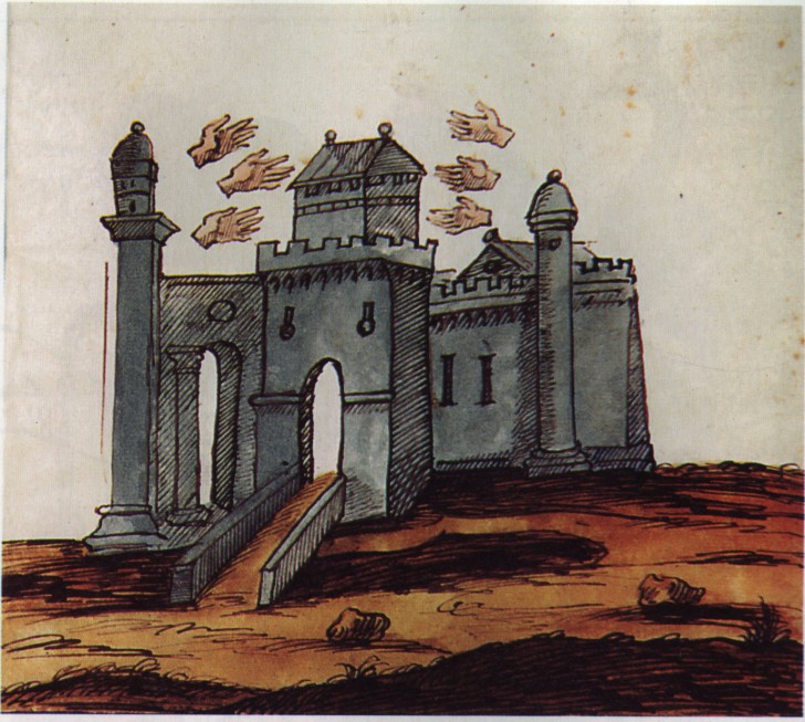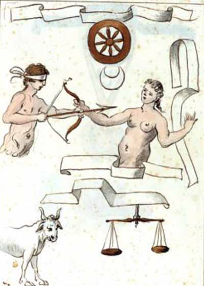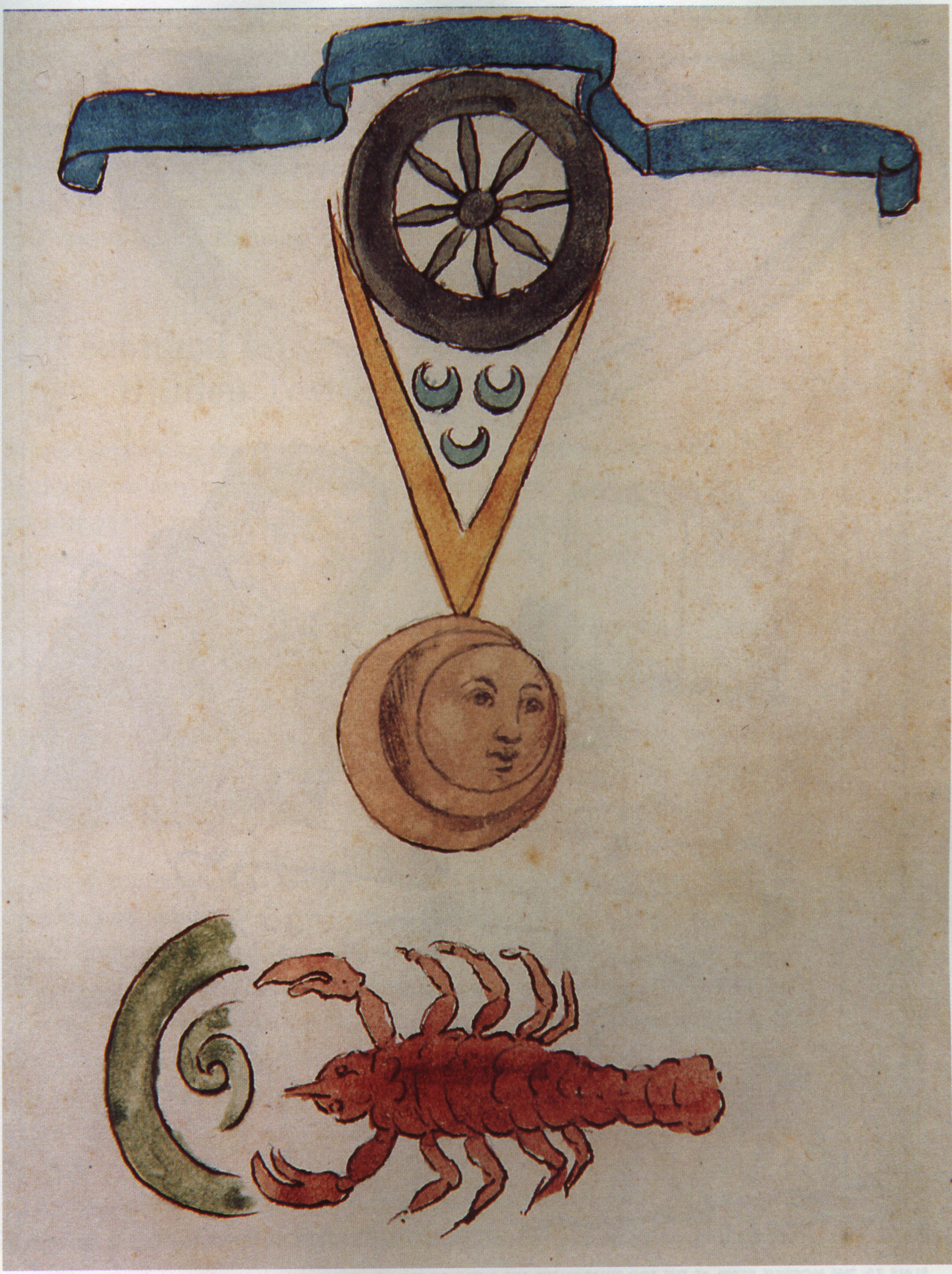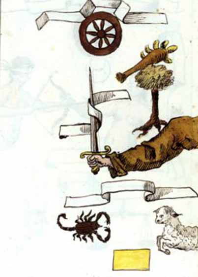 La imagen de la derecha ha sido interpretada como el vaticinio de Nueva York, ya que Nostradamus siempre habló de una Ciudad Nueva (dentro de la rueda se divisan unos edificios).
