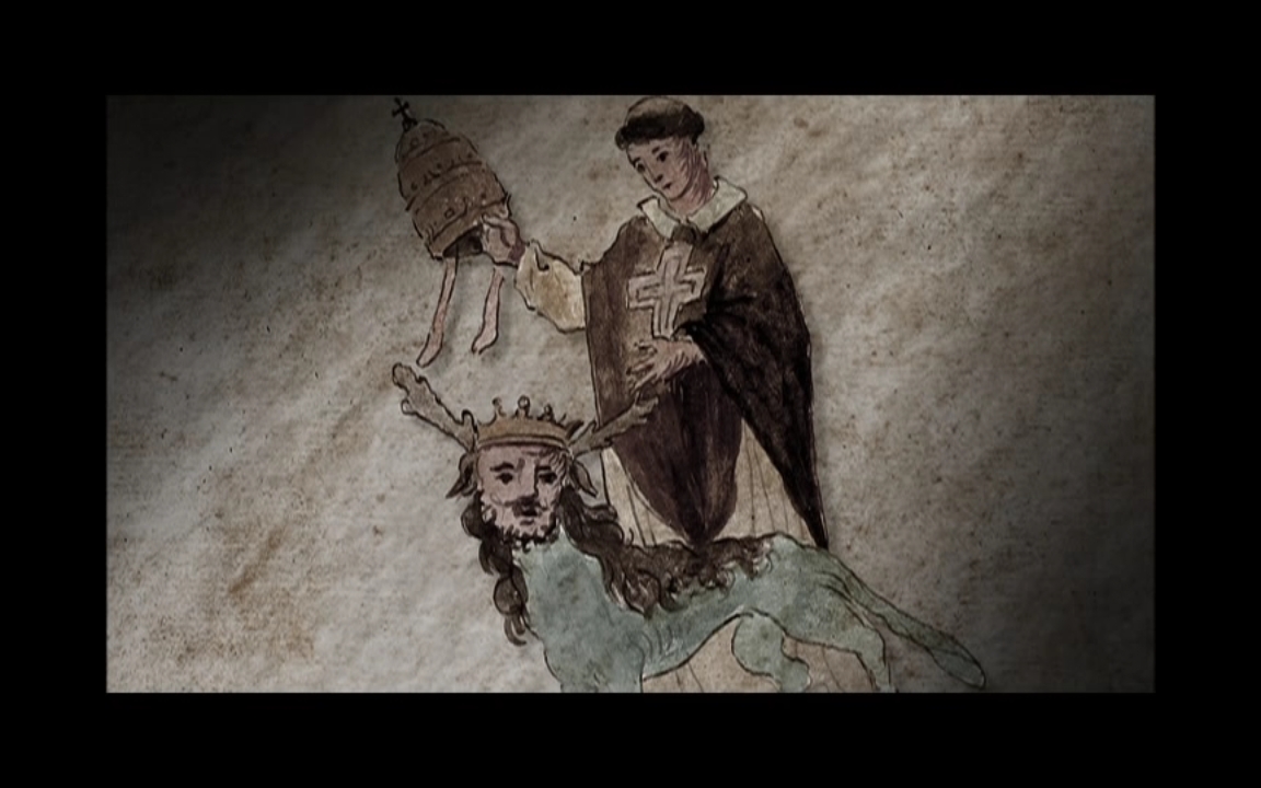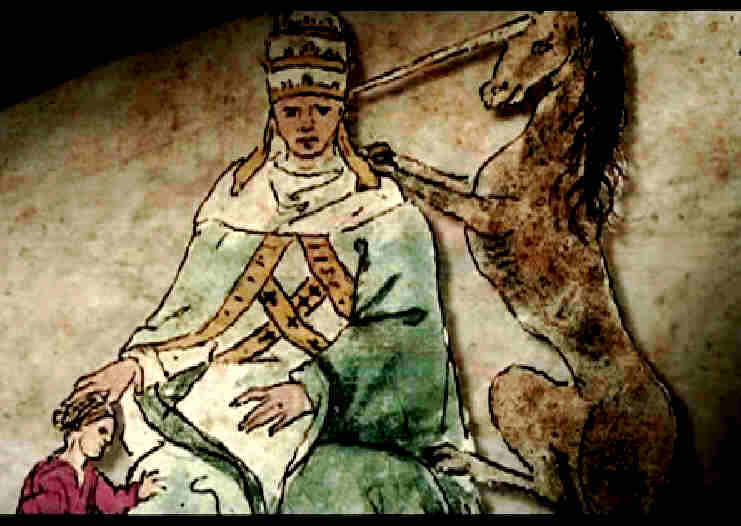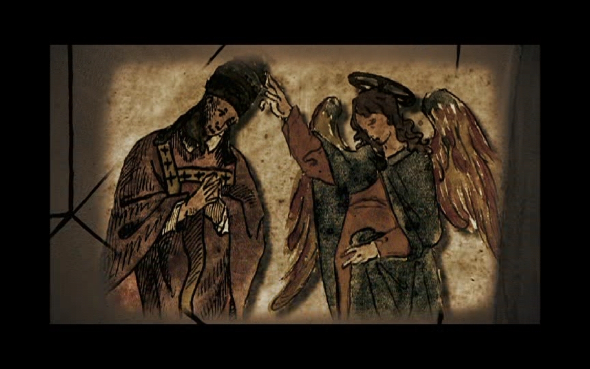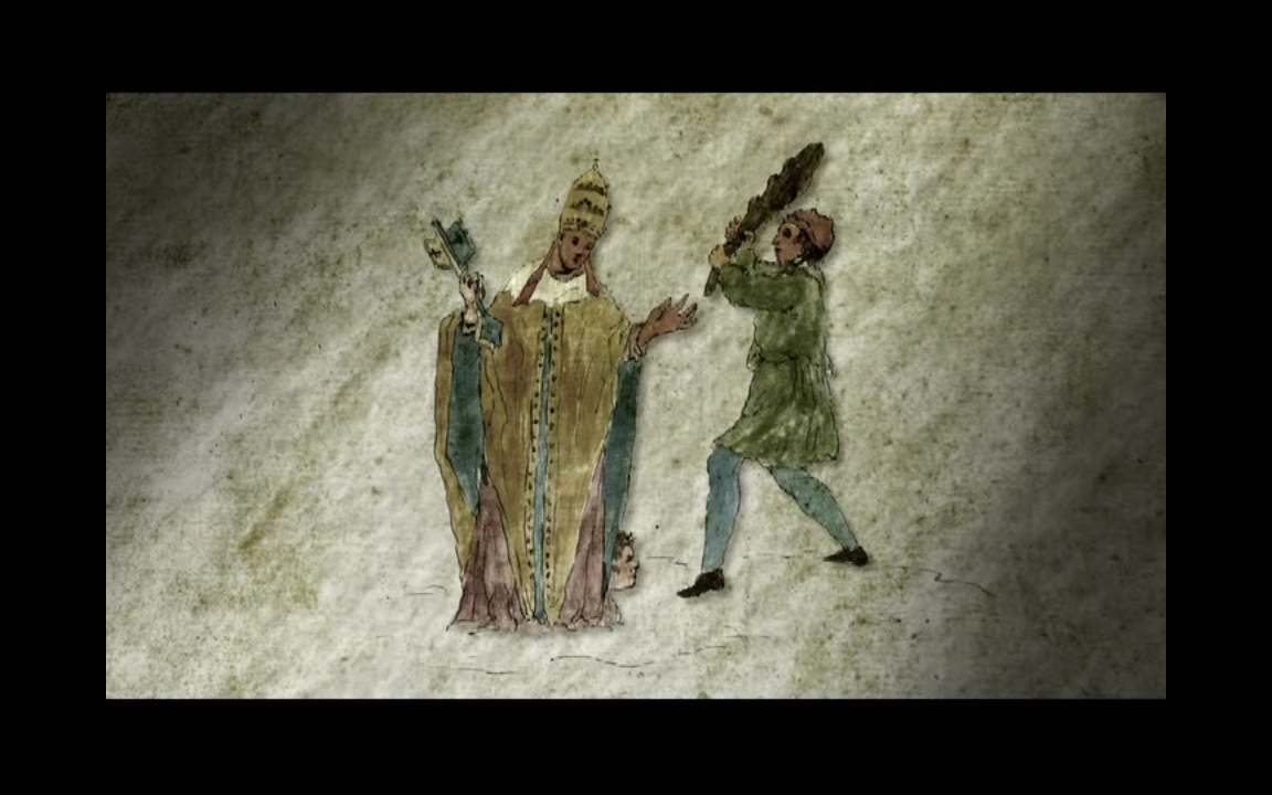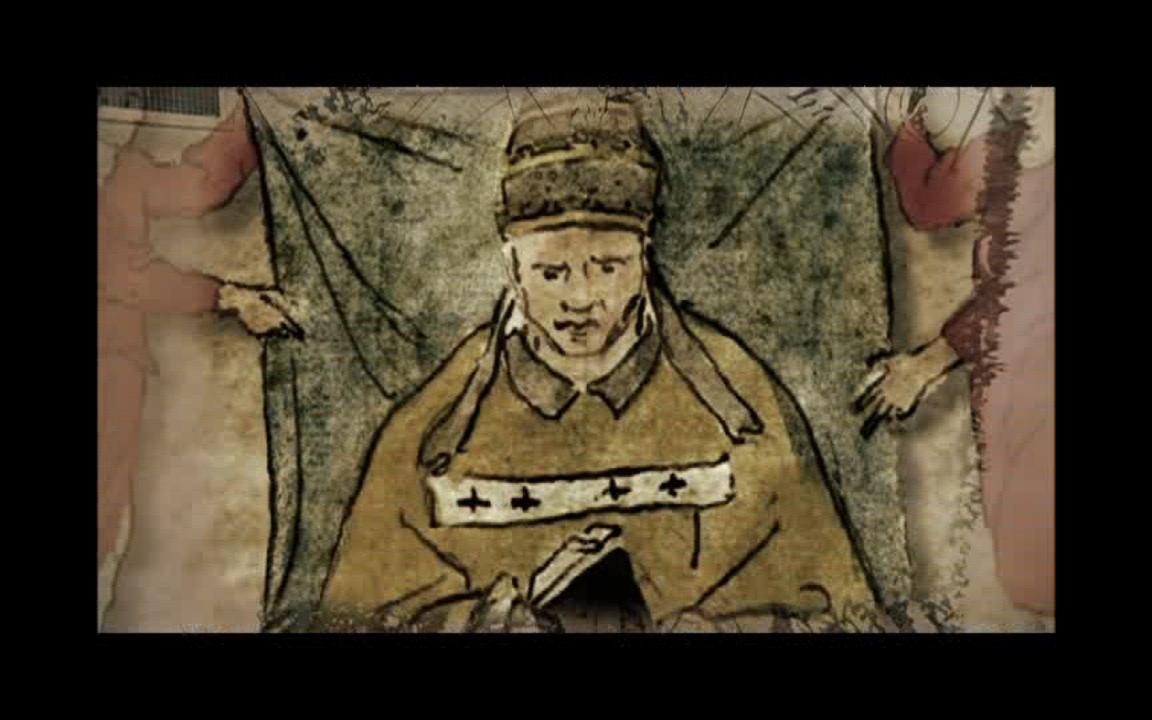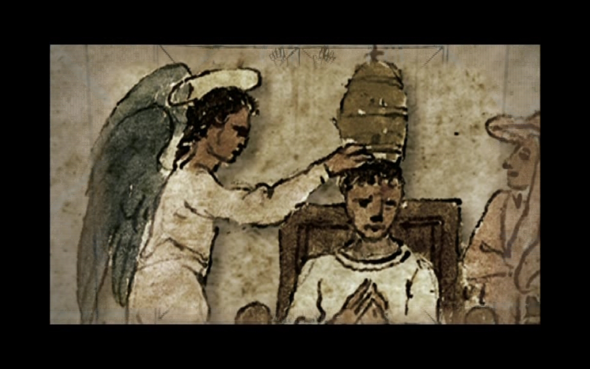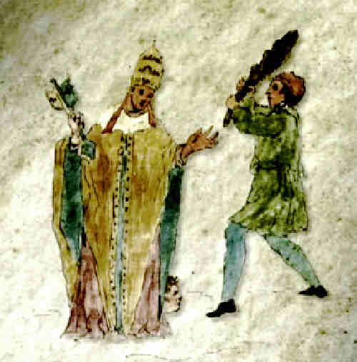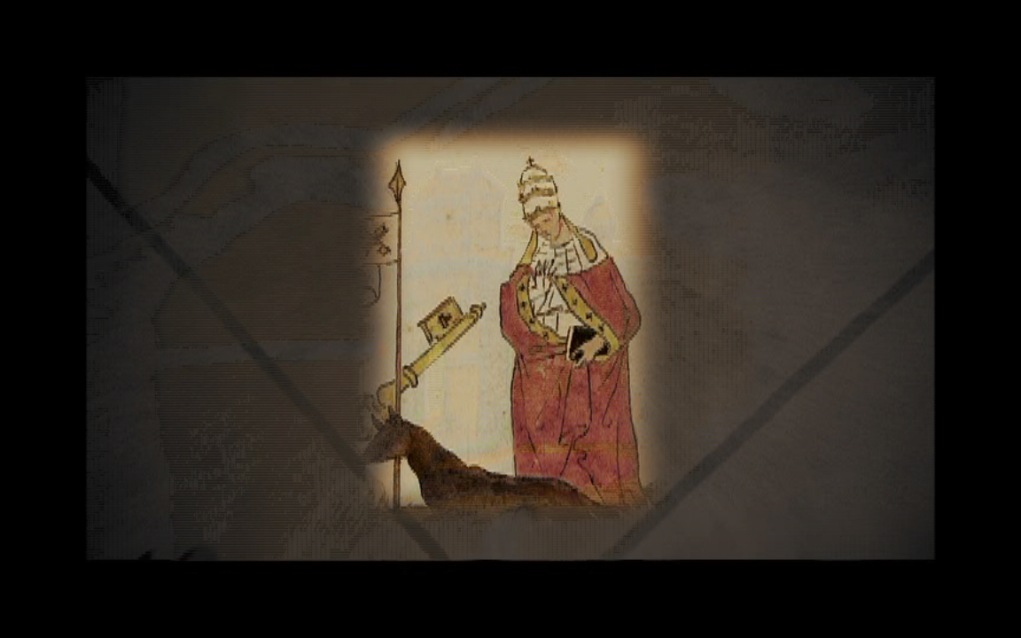 La imagen de abajo muestra al papa Juan Pablo II y su ministerio sacerdotal. Un religioso enfadado ha tomado la cruz del papa y su bastón, simbolizando todos los religiosos que han buscado el poder y el control de la iglesia en detrimento del papa, la iglesia y el mundo.