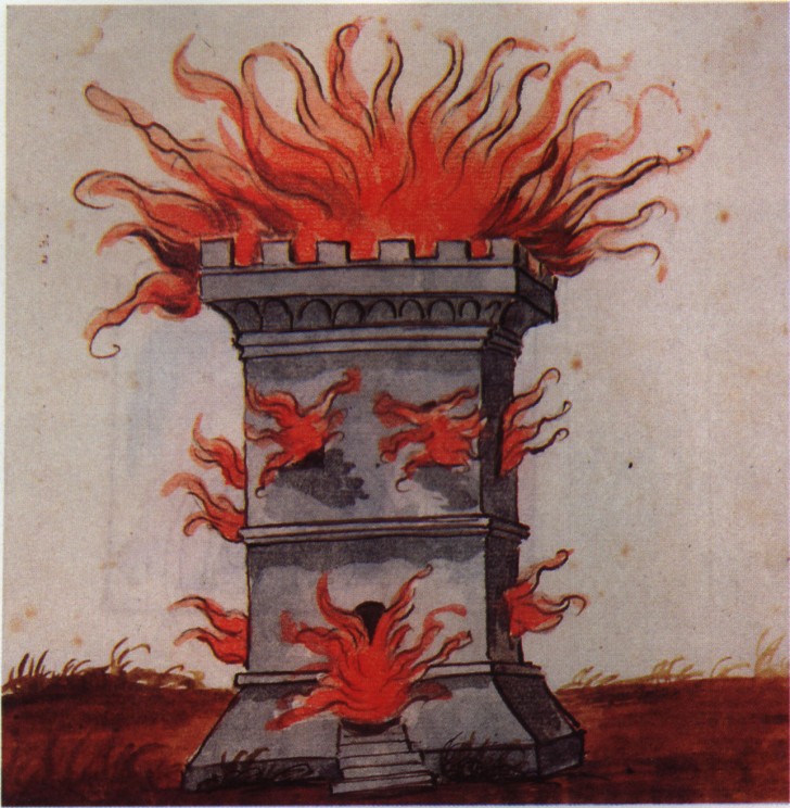 Esta ilustración ha sido interpretada como los atentados del 11 de septiembre a las Torres Gemelas, pero le veo más parecido al arcano de La Torre. Ni siquiera el dibujo de Nostradamus representa los dos edificios del World Trade Center.