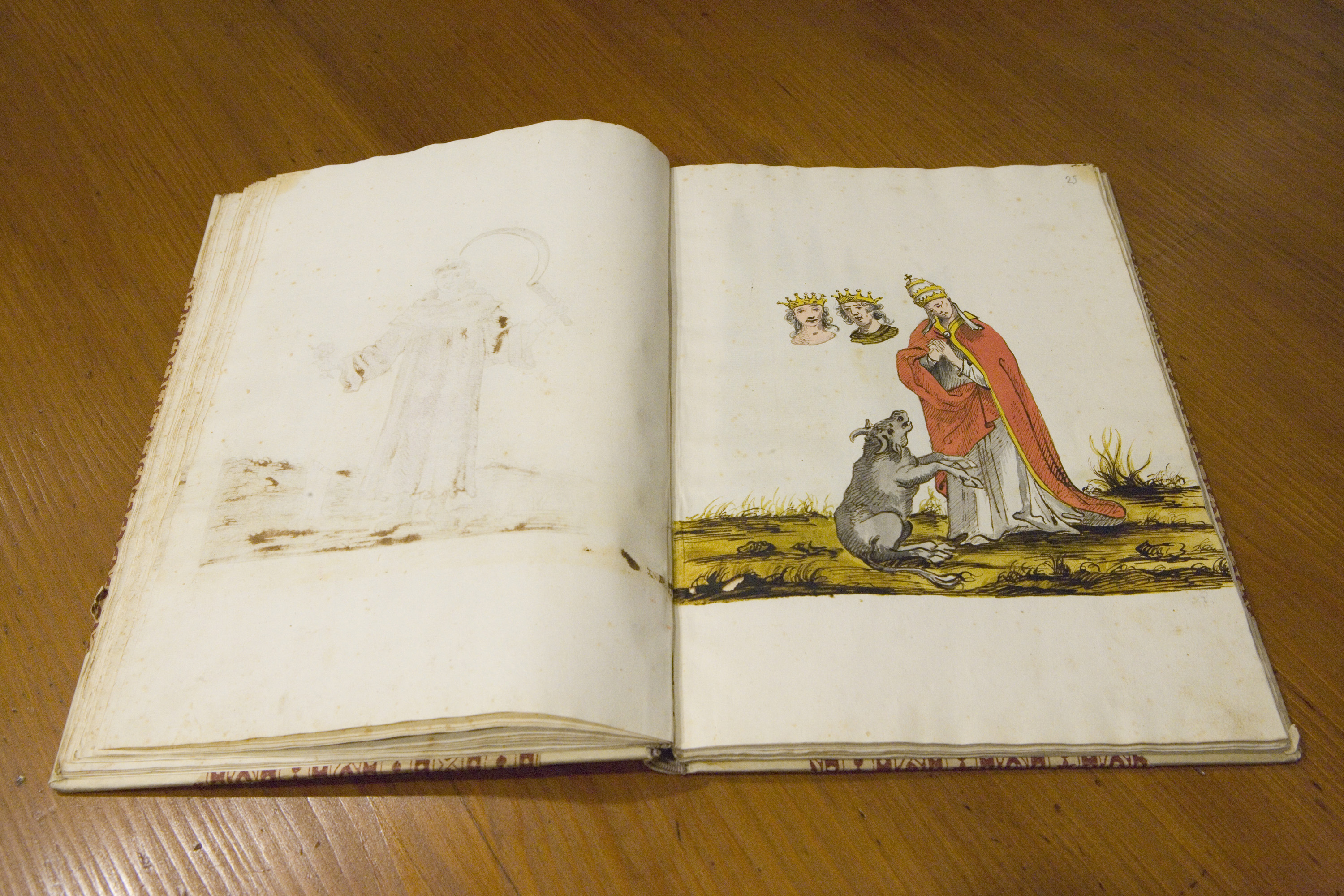 Como se sugiere en varias inscripciones añadidas, estas ilustraciones fueron inspiradas por las profecías papales del abad Joaquín de Fiore, un monje calabrés cisterciense del siglo XII. Basándose en sus predicciones bajo la Apocalipsis de San Juan, Joaquin da Fiore indicó que el apocalipsis empezaría en el año 1260.