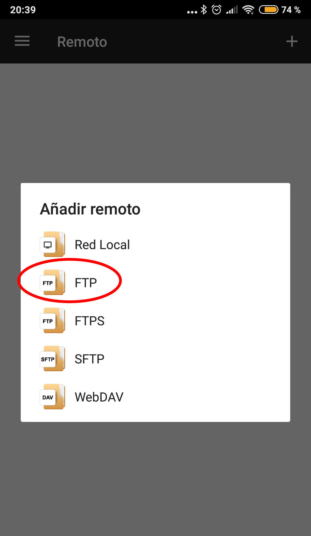 A continuación nos pedirá que le digamos qué clase de conexión queremos. En nuestro caso tenemos que escoger FTP a secas, pero existen también conexiones SFTP (FTP seguro), Red Local (para una red como la del hogar y compartir ficheros en nuestra casa), FTPS o WebDAV. En este ejemplo escogemos FTP.