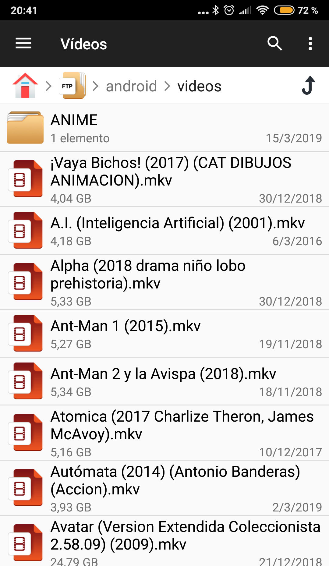 Cuando hemos accedido, veremos las carpetas o ficheros disponibles. Para movernos por las carpetas, simplemente vamos pulsando lo que queremos abrir o en qué carpeta queremos entrar. Para volver hacia atrás, pulsamos el botón de atrás de nuestro dispositivo móvil.