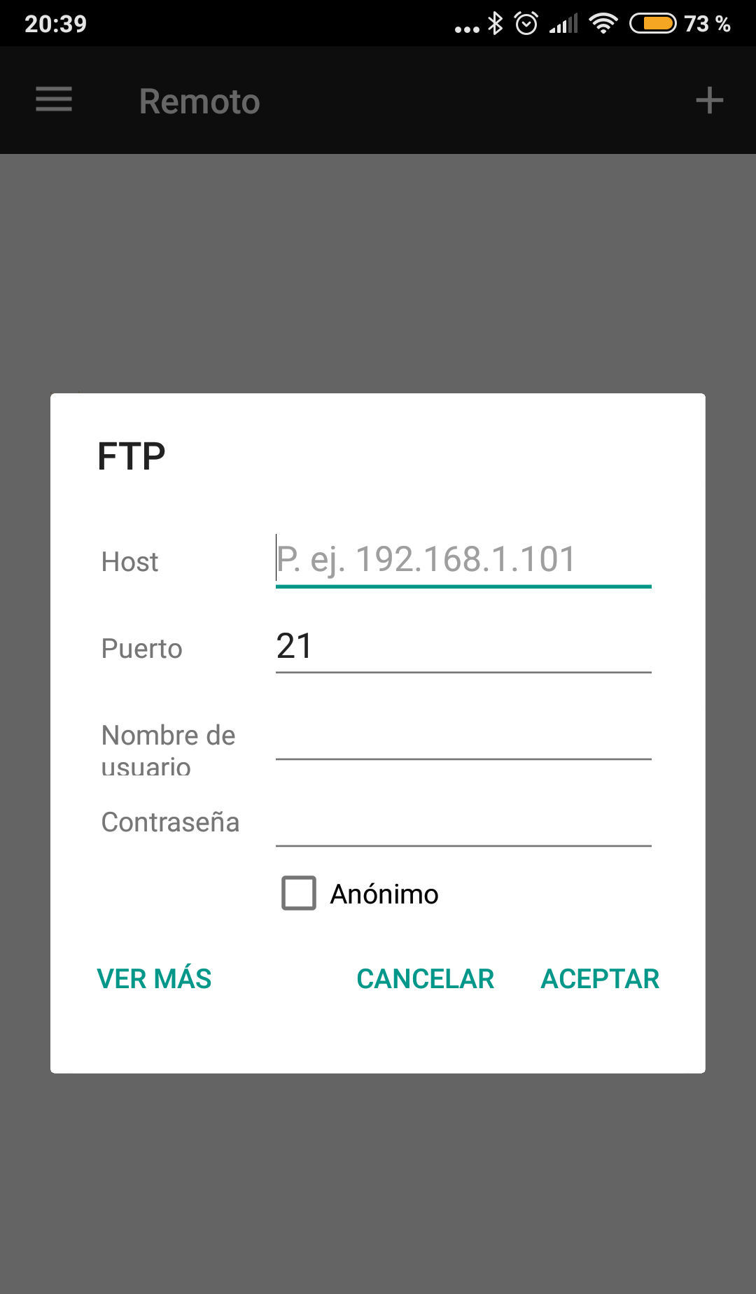 Nos aparecerá una pantalla donde debemos introducir algunos datos para establecer la conexión FTP con éxito.