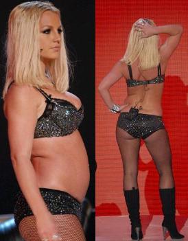 Ese mismo dia le habian dicho a Britney que perdia la custodia de sus hijos, y solo fue a la presentacion por cuestiones de legales de contrato. Ademas, eso no es ESTAR GORDA tiene una flacidez muy normal despues de haber estado embarazada, y si eso para ustedes es estar gordo, en que clase de mundo enfermo vivimos?