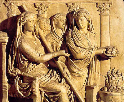 Vesta (Hestia para los griegos), diosa del fuego, era hija de Saturno y de Cibeles. Su culto fue introducido en Italia por el príncipe troyano Eneas; cinco siglos después Numa le erigía un templo en Roma, en el que se guardaba el paladión y se mantenía continuamente vivo el fuego sagrado.