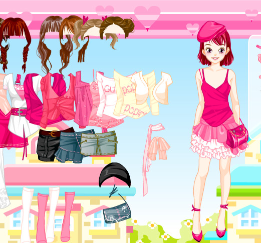 Si te gusta el color rosa, te gustará jugar con esta niña y sus ropas, que son todas de color rosita. Aparte de los vestidos y trajes, tienes también zapatos, bolsos, lazos, gorros, calcetines, adornos para el pelo de rosas y flores, collares o pendientes. También puedes peinar a la chica poniéndole una peluca diferente.
