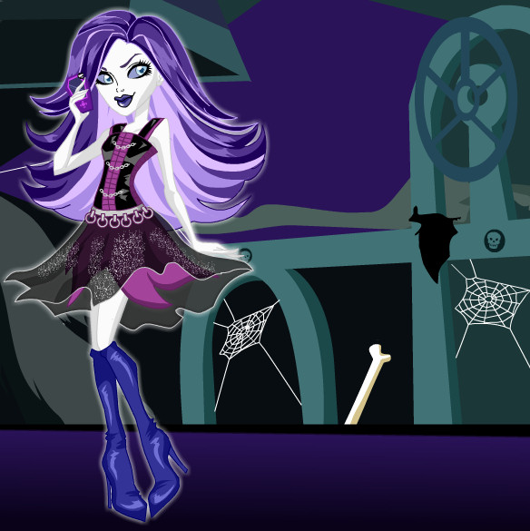 Spectra Vondergeist es una Monster Hight de lo más fashion, que siempre emplea colores oscuros como el negro o morado. Le gusta ir a la moda y llevar caros modelos y complementos para estar guapa. Podrás escoger vestidos, tops, medias, leotardos, zapatos o botas y complementos como celulares, moviles, cadenas o su simpática mascota. Arregla a Spectra para que quede terroríficamente bella.