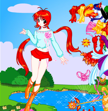 Si te gustan los juegos de vestir hadas, este seguro que te encanta. Puedes vestir con estilo y elegancia a esta maga de pelo rojo con vestidos y trajes muy bonitos. Toda la ropa tiene esa magia y belleza de la ropa de hadas. Seguro que disfrutas vistiendo a este ser mágico con toda la ropa y trajes que verás, que como te has dado cuenta, tiene colores rojizos y anaranjados, propios del elemento fuego.