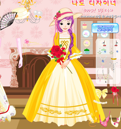 En este juego podrás vestir a esta chica con trajes de época muy elegantes y vestidos largos de volantes. Podrás cambiarle el peinado y adjuntarle complementos bonitos como collares, pendientes o ramos de flores para que luzca bien guapa.