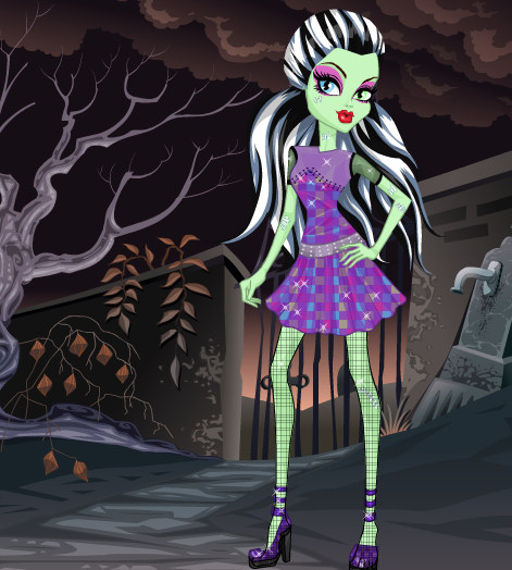 Bolsos, faldas, vestidos, camisas, blusas, camisetas, medias, leotardos, zapatos, deportivas y hasta joyas te esperan en este juego para vestir a Frankie Stein para que esté linda. Tienes también varios peinados para escoger y así peinar a la chica. Si alguno de los elementos que le has puesto no te gusta, puedes eliminarlos de la lista de la derecha.
