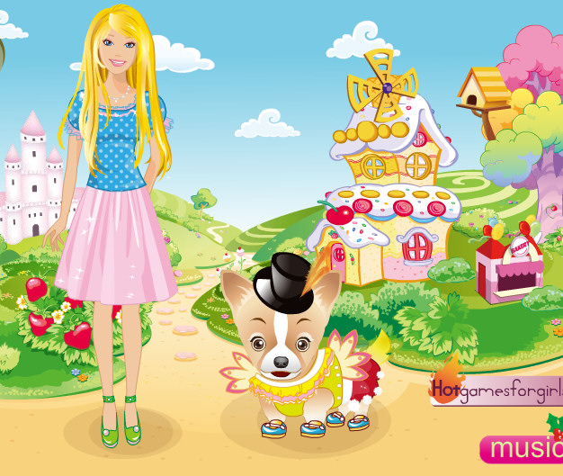 Hoy es el cumpleaños del amigo perro de Barbie, su mascota querida. Dispones de muchos trajes de colores diferentes y disfraces para que el perrito quede bien vestido. También puedes cambiarle el color de la cola o el flequillo, y tienes muchos accesorios para dejar al can bien arreglado, como zapatos o gorros.