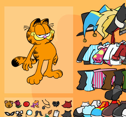 Divertido juego de vestir al gatito con trajes. Podrás vestir a Garfield con trajes y disfraces de cocinero, superhéroe, gangster, bufón, pirata, vikingo, ninja y muchos más, con los que seguro que lo pasas muy bien y disfrutas viendo los diferentes estilos. Seguro que quedas encantado con el resultado logrado en este juego de vestir gatos de dibujos animados o caricaturas.