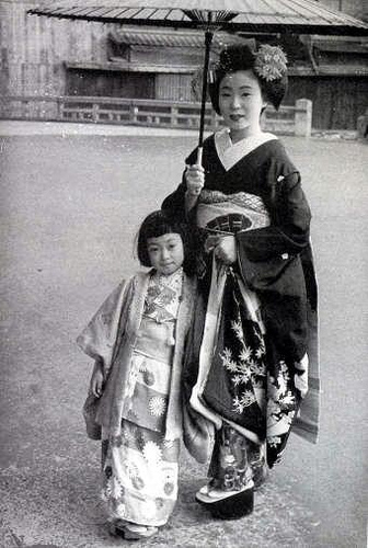 Fotografía de una Maiko junto a Mineko, que sólo tenía 7 años.
