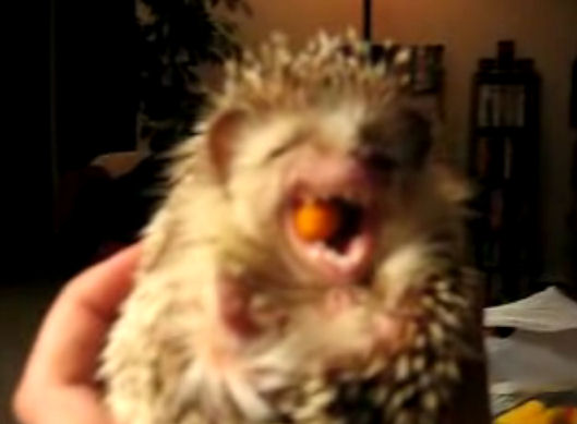 En este vídeo tan curioso vemos a un erizo comiendo. La verdad que nunca me había imaginado que fuese tan gracioso verle, hay momentos que parece reírse al comer, pero supongo que es por hacer fuerza al masticar.