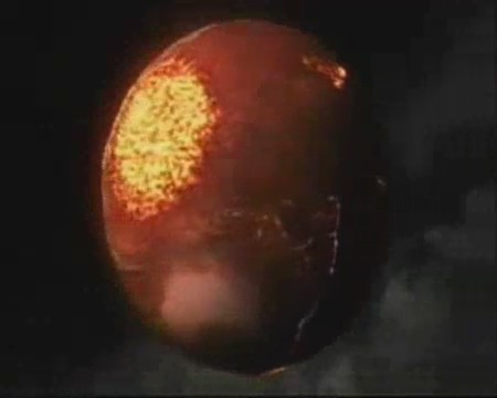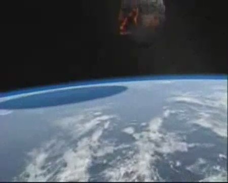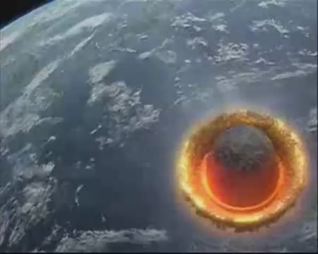 En este vídeo japonés, un asteroide colisiona con la Tierra y la onda expansiva es bastante fulminante con el ecosistema y la humanidad, quedando la Tierra asolada.