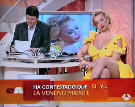«Me han comparado con las bellezas más grandes de este país: Raquel Welch, Brigitte Bardot, Ursula Andress. Cuando quieras yo le reto a ella, aquí en el plató, que nos desmaquillen, y nos rapen la cabeza (plas). Cuando quiera.»