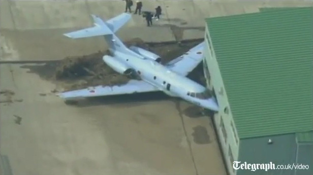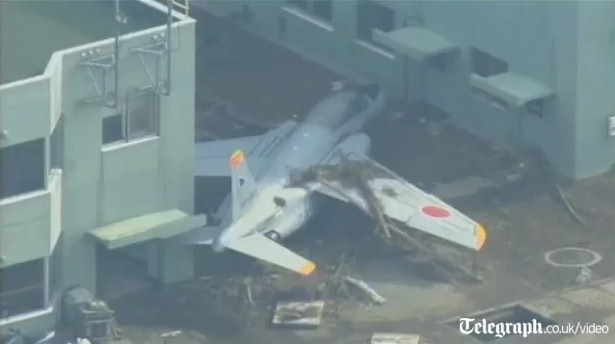 La base de las Fuerzas de Autodefensa de Japón tras el tsunami: helicópteros y aviones han sido barridos por las olas.
