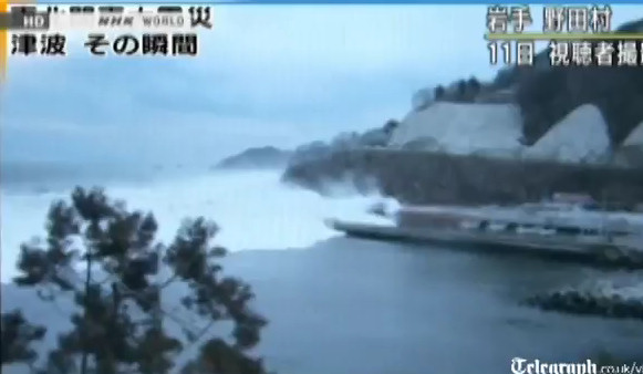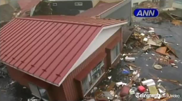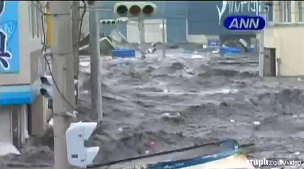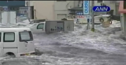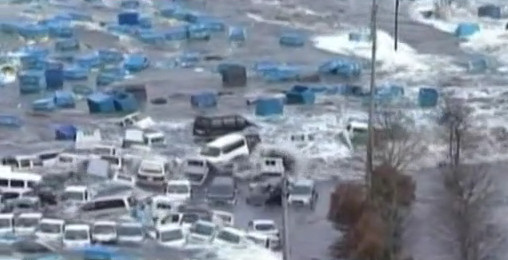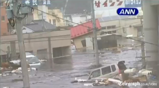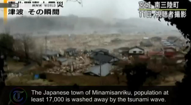 Impresionantes escenas del pueblo de Minamisanriku siendo devastado y arrasado por el tsunami, literalmente todo el pueblo flota en el agua. Pasados dos días del suceso, el pueblo contabilizó 10.000 desaparecidos del total de 17.000 habitantes que la poblaban.