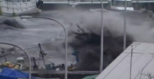 El tsunami arrasa el puerto de Miyako y Hachinohe, increíble el barco que se ha subido al puerto.