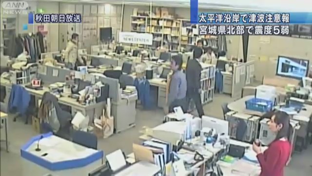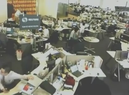 Imágenes de un rastro de tsunami y un ligero temblor en una oficina.