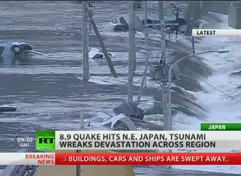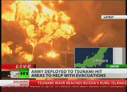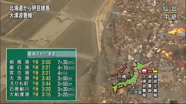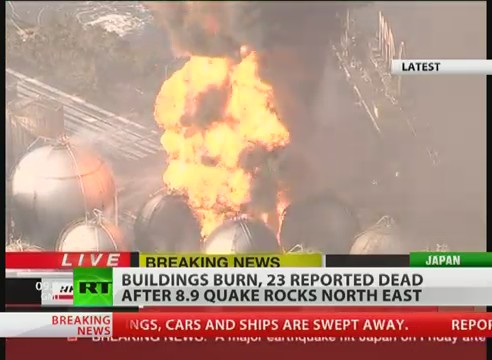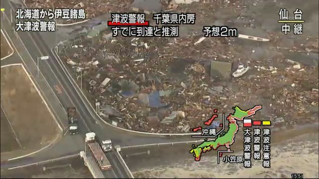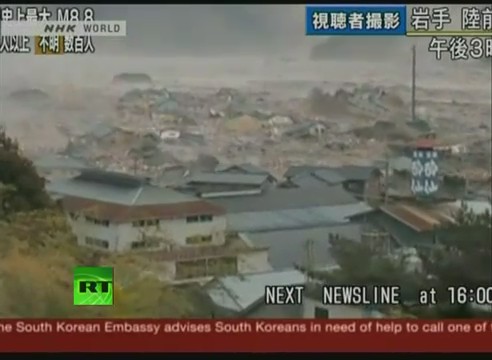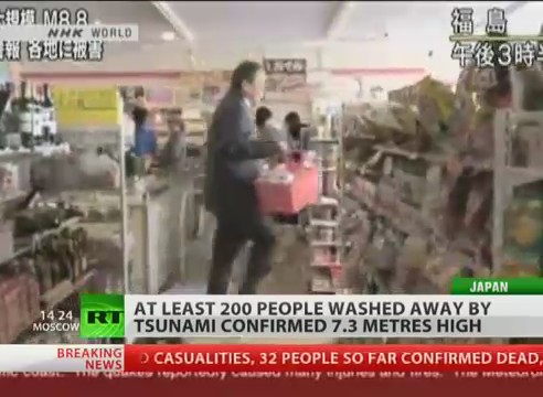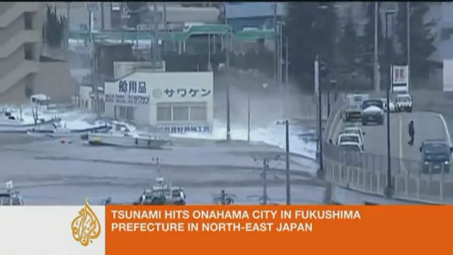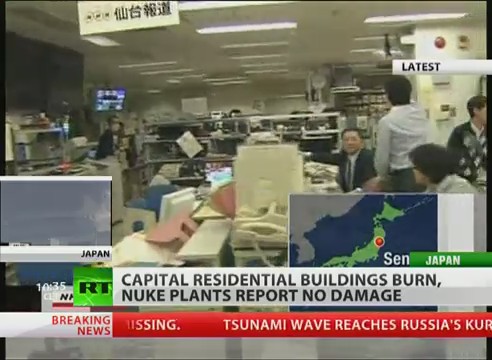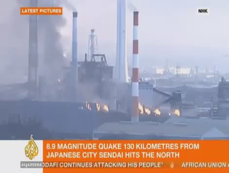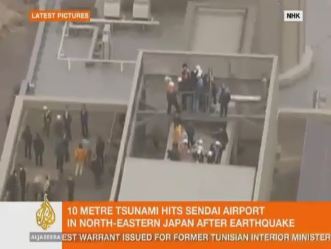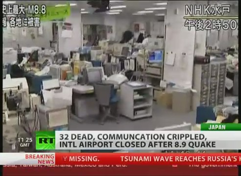 Imágenes del tsunami (increíble el hombre del puente), temblores en las oficinas de NHK e incendios.