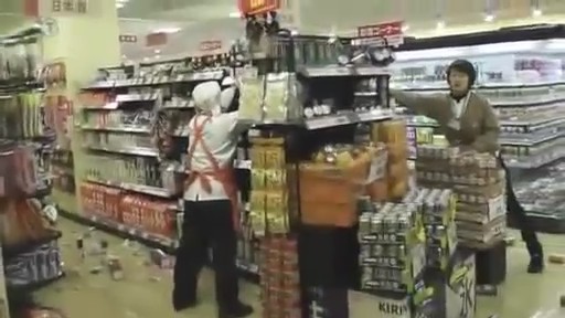 Terremoto en pleno supermercado. Imagino que pensaban que acabaría enseguida el seísmo, porque poco sentido se le ve a aguantar las estanterías.