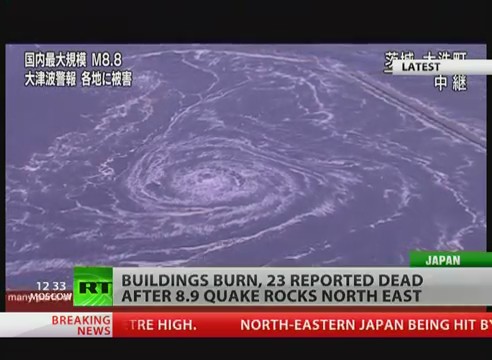 Otro noticiero con refrito de imágenes, aunque aparecen algunas que no había visto en los vídeos anteriores, como el remolino de agua en el mar.