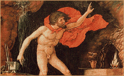 Vulcano o Hefesto para los griegos, era hijo de Júpiter y de Juno, y al venir al mundo, tal era su deformidad que su padre lo precipitó (otra versión cuenta que salió en defensa de su madre Juno, contra Zeus) desde lo alto de los cielos horrorizado ante tanta fealdad.